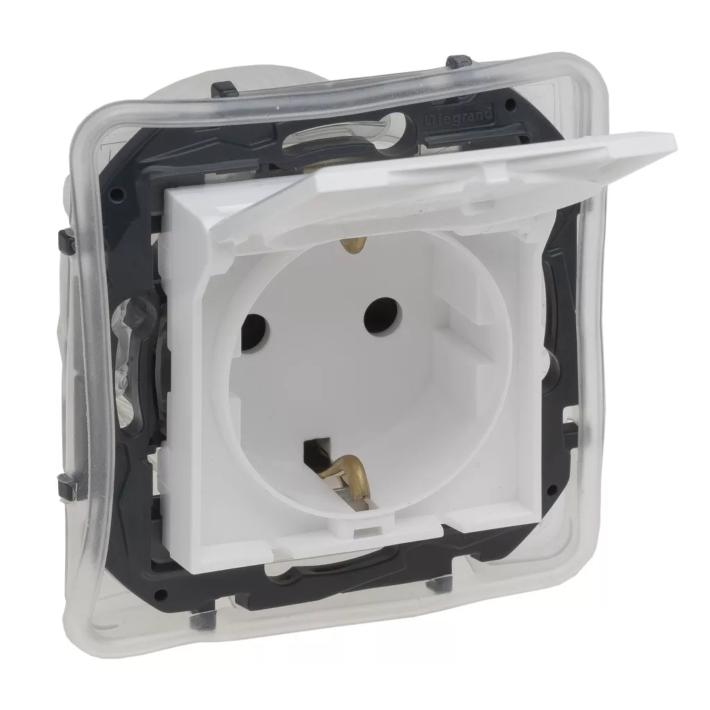 Legrand 863123B, Niloé Step 2P+F Csatlakozóaljzat Biztonsági Zsaluval, Csapófedéllel, Rugós Vezetékbekötéssel, IP44, Fehér